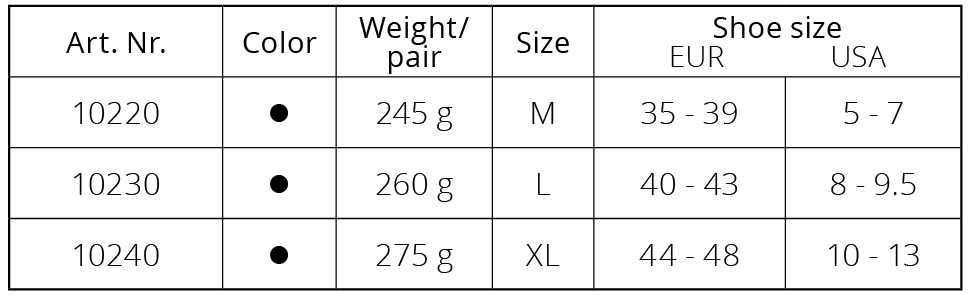 A pair of micro crampons generally weighs from 450 grams for hiking and winter trekking models, to only 180 grams for models for winter trail and vertical running competitions.